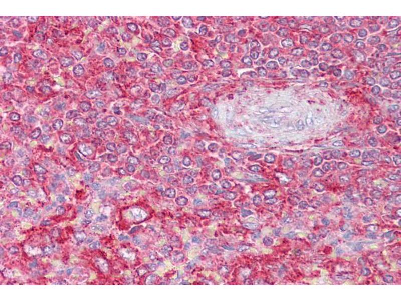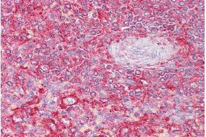 Immunohistochemistry: Paraffin embedded Human Spleen. Recommended concentration: 2.5 μg/mL.