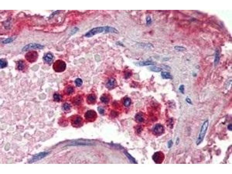 Immunohistochemistry: In paraffin embedded blood vessel shows strong staining of cytoplasm of neutrophils.. Recommended concentration, 2-4 μg/mL.