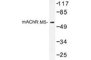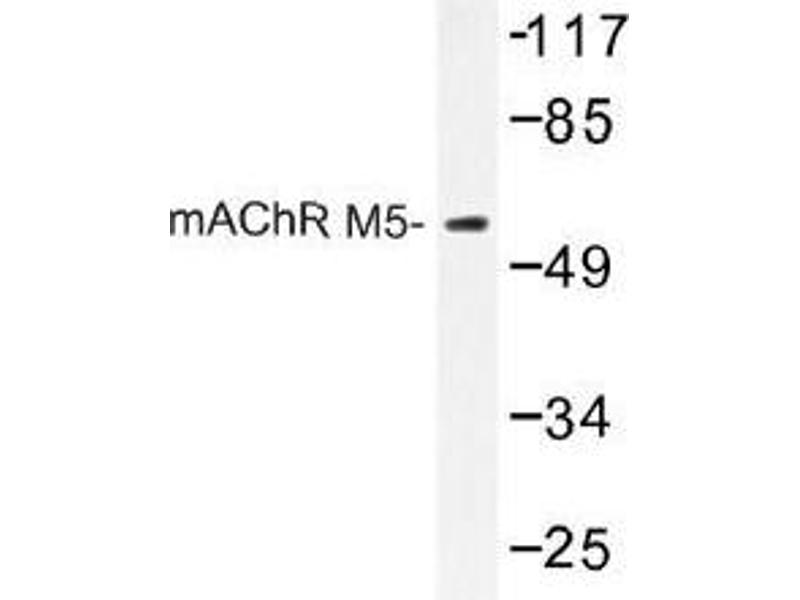 The muscarinic acetylcholine receptors (mAChR) mediate a variety of cellular responses, including inhibition of adenylate cyclase, breakdown of phosphoinositides and modulation of potassium channels. The mAChRs transducer signals by coupling to G-proteins, which then modulate several downstream effector proteins and ion channels. Five mAChR subtypes have been identified, designated M1 to M5. The five receptor subtypes show distinct patterns of tissue distribution, as well as distinct pharmacological and functional properties. The amino acid sequence of each mAChR subtype reflects a structure that is characteristic of G-protein coupled receptors, consisting of seven highly conserved transmembrane segments and a large intracellular region unique to each subtype, which constitutes the effector-coupling domain.Synonyms: CHRM5, mAChR M5, mAChR-M5