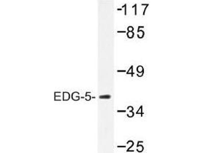The EDG (endothelial differentiation gene) family of G protein coupled receptors consists of eight family members that bind lysophospholipid (LPL) mediators, including sphingosine-1-phosphate (SPP) and lysophosphatidic acid (LPA). EDG-1, EDG-3, EDG-5 (also designated H218 and AGR16) and EDG-8 bind SPP with high-affinity. EDG-6 is a low-affinity receptor for SPP. LPA preferentially binds to EDG-2, EDG-4 and EDG-7. The EDG receptors couple to multiple G proteins to signal through Ras, MAP kinase, Rho, Phospholipase C or other tyrosine kinases, which lead to cell survival, growth, migration and differentiation. EDG-1 signals through Gi proteins to activate Akt and is expressed in glioma cells. EDG-2 is expressed in brain, especially in white matter tract regions, while EDG-3 is expressed in cardiovascular tissue and in cerebellum. EDG-4 is highly expressed on leukocytes and brain, and EDG-5 has wide tissue distribution, including cardiovascular tissue and brain. Expressed in lymphoid and hematopoietic tissues and in lung, EDG-6 signals through Gi/o proteins, which activate growth related pathways.Synonyms: AGR16, EDG5, Endothelial differentiation G-protein coupled receptor 5, Gpcr13, H218, LPB2, S1P receptor 2, S1PR2, Sphingosine 1-phosphate receptor 2