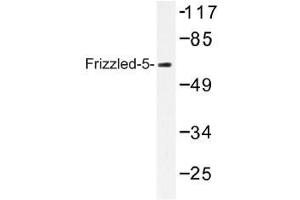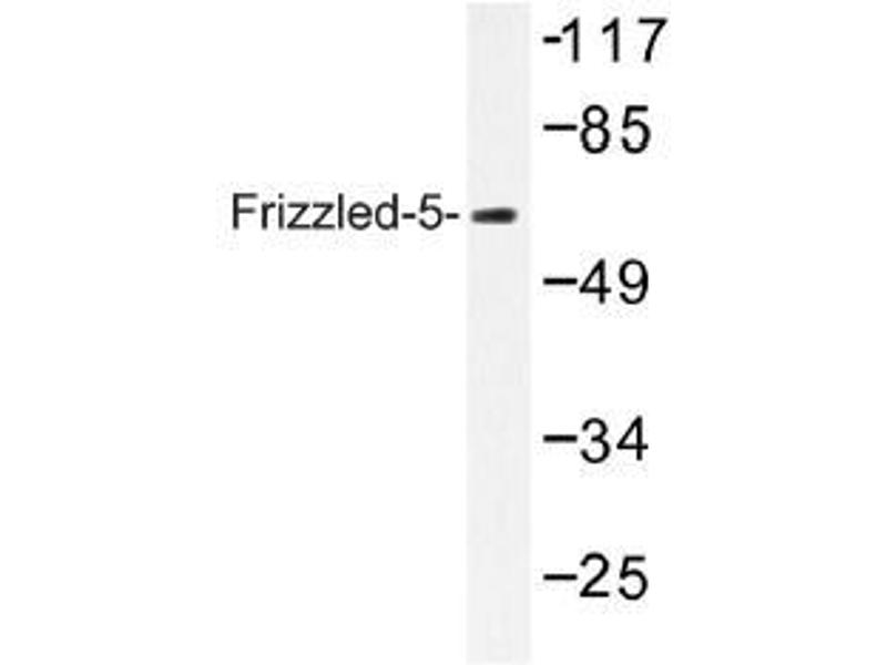 Members of the 'frizzled' gene family encode 7-transmembrane domain proteins that are receptors for Wnt signaling proteins. The Frizzled 5 protein is believed to be the receptor for the Wnt5A ligand. Frizzled 5 has been reported to be expressed in fetal kidney, fetal and adult liver, fetal lung, and adult pancreas. ESTs have been isolated from bone, liver/spleen, placenta, and prostate libraries. Frizzled 5 was cloned from a retina cDNA library.Synonyms: Fz-5, FzE5, HFZ5, hFz5