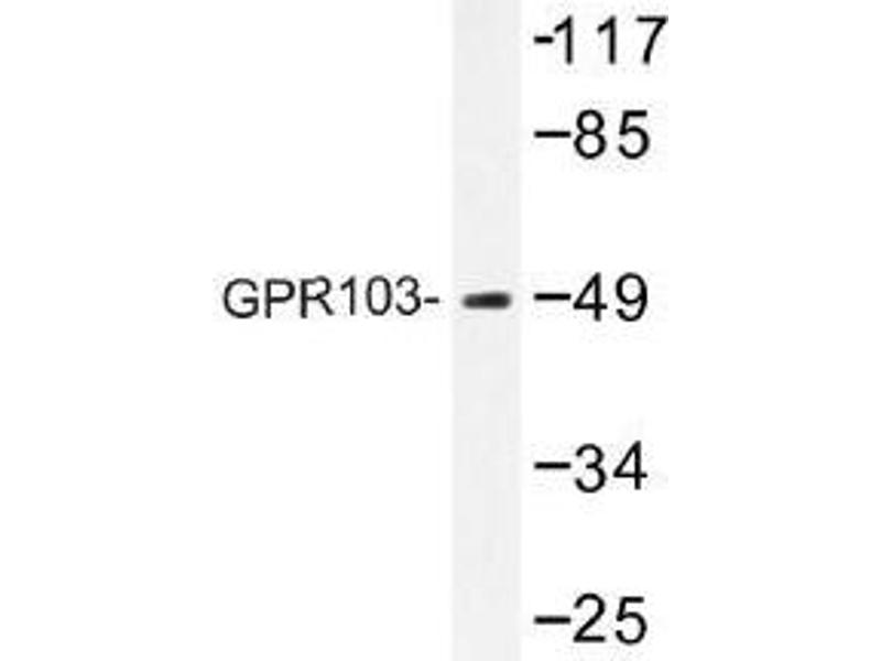 G protein-coupled receptors (GPRs) are a protein family of transmembrane receptors that transmit an extracellular signal (ligand binding) into an intracellular signal (G protein activation). GPR signaling is an evolutionarily ancient mechanism used by all eukaryotes to sense environmental stimuli and mediate cell-cell communication. All of the receptors have seven membrane-spanning domains and the extracellular parts of the receptor can be glycosylated. These extracellular loops also contain two highly conserved cysteine residues which create disulfide bonds to stabilize the receptor structure. GPR103 is a 455 amino acid protein with highest expression in the brain, retina, trigeminal ganglion, hypothalamus and vestibular nucleus. In peripheral tissues, GPR103 is expressed only in the heart, kidney and testis. GPR103 may regulate adrenal function. A hypothalamic neuropeptide of the RFamide family (26RFa) acts as an endogenous ligand for GPR103.Synonyms: AQ27, G-protein coupled receptor 103, Orexigenic neuropeptide QRFP receptor, Pyroglutamylated RFamide peptide receptor, SP9155
