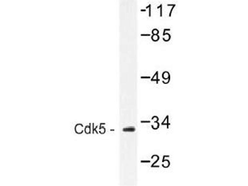 Cell cycle progression is controlled in part by a family of cyclin proteins and cyclin dependent kinases (Cdks). Cdk proteins work in concert with the cyclins to phosphorylate key substrates involved in each phase of cell cycle progression. Another family of proteins, Cdk inhibitors, also plays a role in regulating cell cycle by binding to cyclin-Cdk complexes and modulating their activity. Several Cdk proteins have been identified, including Cdk2-Cdk8, PCTAIRE-1-3, PITALRE and PITSLRE. Cdk5 is thought to be involved in the G1/S transition of the cell cycle and is highly expressed in mature neurons. Activity of Cdk5 increases significantly during neuronal differentiation. Cdk5 has been postulated to be a neurofilament or Tau protein kinase, based on its ability to phosphorylate these proteins in vitro.Synonyms: Cell division protein kinase 5, Cyclin-dependent kinase 5, PSSALRE, Serine/threonine-protein kinase PSSALRE, TPKII catalytic subunit, Tau protein kinase II catalytic subunit