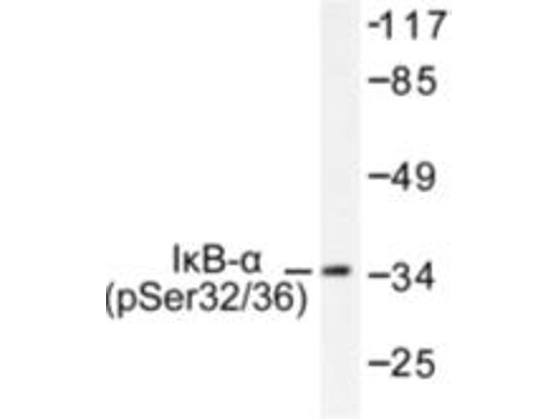 On the basis of both functional and structural considerations, members of the IκB family of proteins can be divided into four groups. The first of these groups, IκB-α (a 35-37 kDa protein), includes the avian protein pp40 and the mammalian MAD-3, both of which inhibit binding of p50-p65 NFκB complex or Rel protein to their cognate binding sites but do not inhibit the binding of p50 homodimer to κB sites, suggesting that the IκB-α family binds to the p65 subunit of p50-p65 heterocomplex through Ankyrin repeats. The second member of the IκB family is represented by a 45 kDa protein designated IκB-β. The third group of IκB proteins is represented by IκB-γ, a 70 kDa protein identical in sequence with the C-terminal domain of the p110 precursor of NFκB p50 and expressed predominantly in lymphoid cells. An additional IκB family member has been identified as IκB-ε, a 45 kDa protein which has several phosphorylated forms and is primarily found complexed with RelA and/or c-Rel.Synonyms: I kappa B-alpha, I-kappa-B-alpha, IkB-alpha, IkappaBalpha, MAD3, Major histocompatibility complex enhancer-binding protein MAD3, NF-kappa-B inhibitor alpha, NFKBI