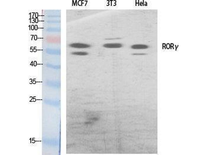 RORγ Polyclonal Antibody detects endogenous levels of RORγ protein.