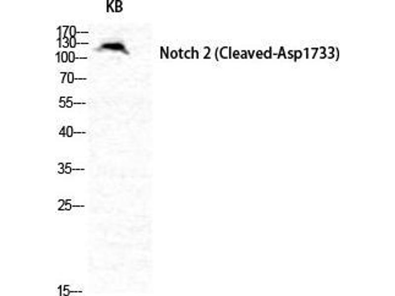 - Cleaved-Notch 2 (D1733) Polyclonal Antibody detects endogenous levels of fragment of activated Notch 2 protein resulting from cleavage adjacent to D1733.