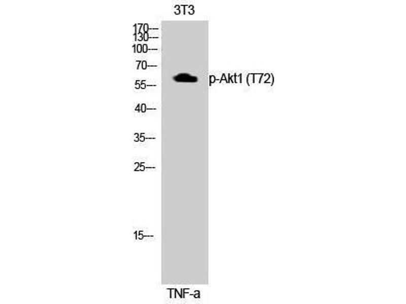 Phospho-Akt1 (T72) Polyclonal Antibody detects endogenous levels of Akt1 protein only when phosphorylated at T72.