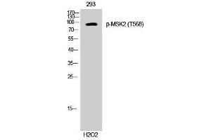 Phospho-MSK2 (T568) Polyclonal Antibody detects endogenous levels of MSK2 protein only when phosphorylated at T568.