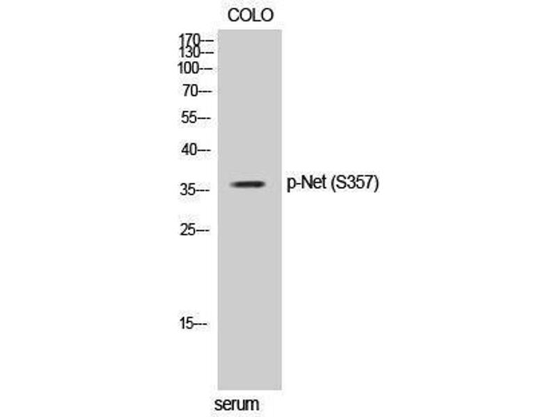- Phospho-Net (S357) Polyclonal Antibody detects endogenous levels of Net protein only when phosphorylated at S357.