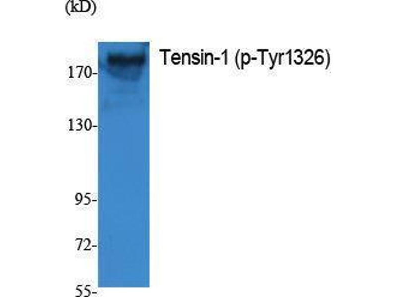 Phospho-Tensin-1 (Y1326) Polyclonal Antibody detects endogenous levels of Tensin-1 protein only when phosphorylated at Y1326.