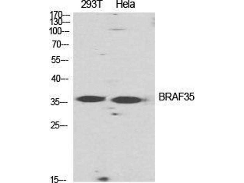 BRAF35 Polyclonal Antibody detects endogenous levels of BRAF35 protein.
