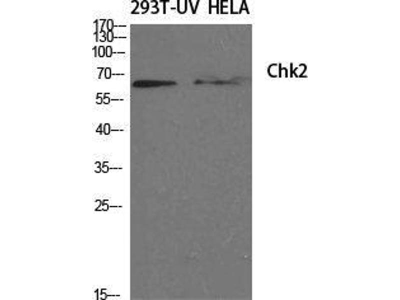 Chk2 Polyclonal Antibody detects endogenous levels of Chk2 protein.