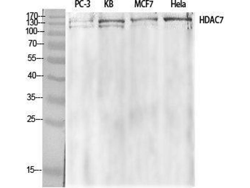 HDAC7 Polyclonal Antibody detects endogenous levels of HDAC7 protein.