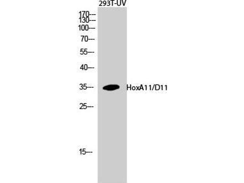 HoxA11/D11 Polyclonal Antibody detects endogenous levels of HoxA11/D11 protein.