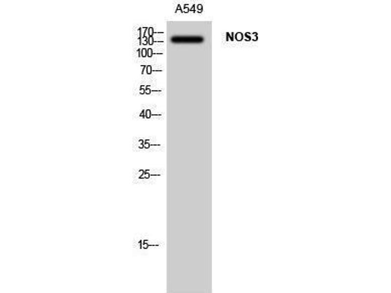 NOS3 Polyclonal Antibody detects endogenous levels of NOS3 protein.
