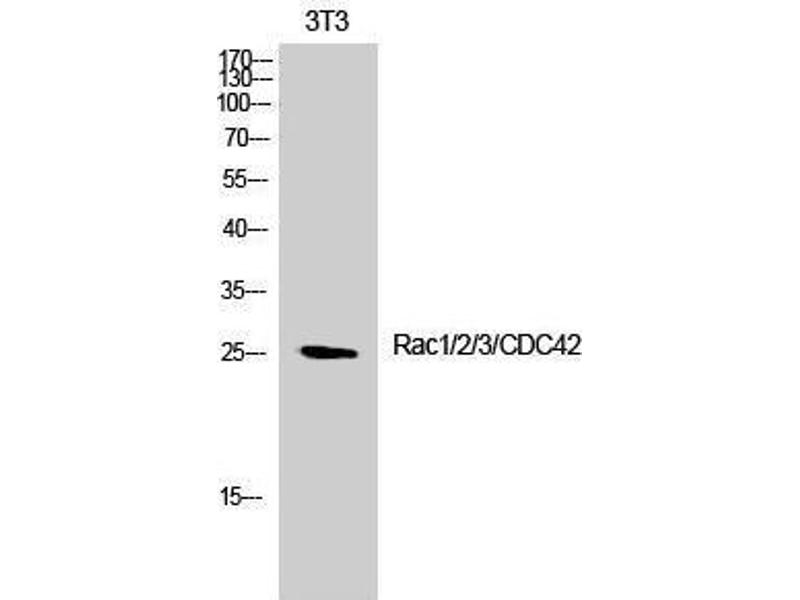 Rac1/2/3/CDC42 Polyclonal Antibody detects endogenous levels of Rac1/2/3/CDC42 protein.
