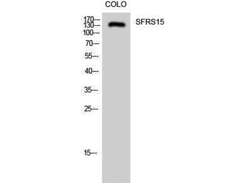 SFRS15 Polyclonal Antibody detects endogenous levels of SFRS15 protein.