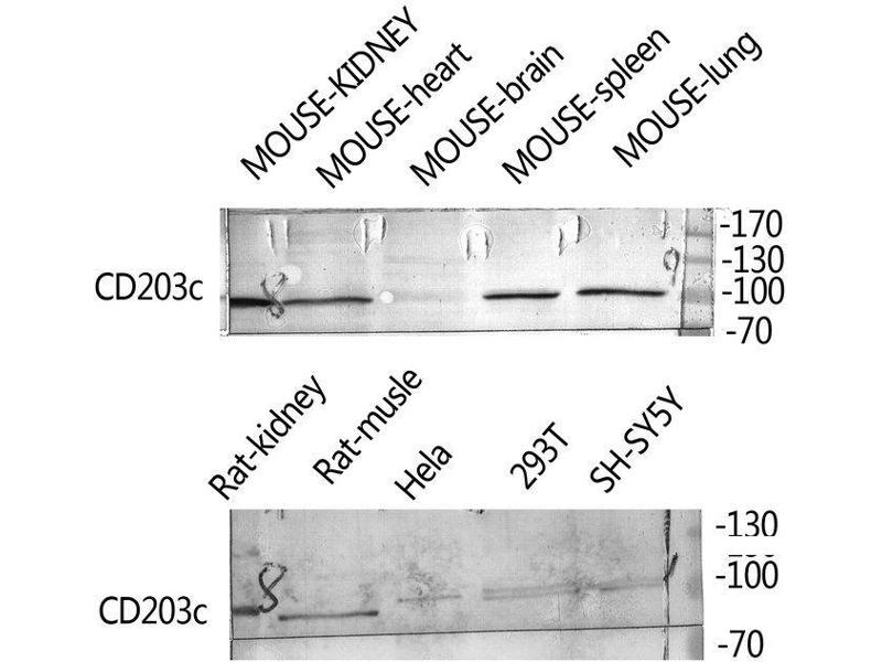 CD203c Polyclonal Antibody detects endogenous levels of CD203c protein.