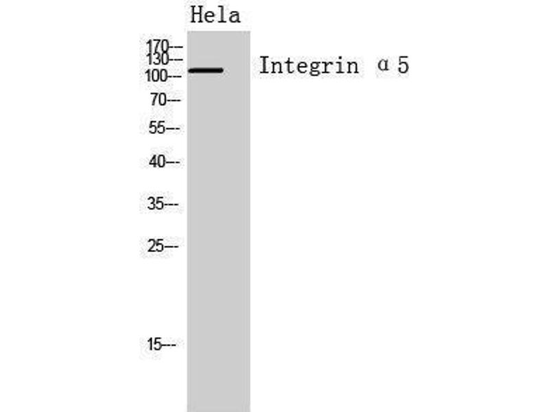 Integrin α5 Polyclonal Antibody detects endogenous levels of Integrin α5 protein.