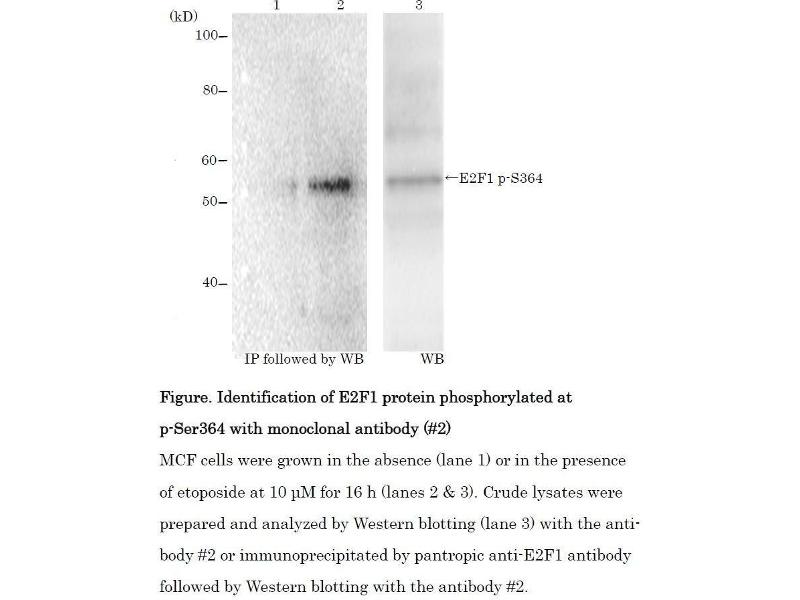 Product: Mouse monoclonal antibody (clone #2) specific to the human E2F1 protein phosphorylated at Ser364. Produced in serum-free medium and purified under mild conditions