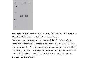 Retinoblastoma protein (Rb), the tumor suppressor product of the retinoblastoma susceptibility gene, is a 110 kDa protein that functions as a negative regulator of the cell cycle by arresting cells in the G1 phase and halting inappropriate cell proliferation. At the transcriptional level, Rb protein exerts its growth suppressive function by binding to transcription factors including E2F1, PU1, ATF2, UBF, Elf-1 and c-Abl. Loss of Rb function leads to uncontrolled cell growth and tumor development and is found in all retinoblastomas and in a variety of other human malignancies. The ability of Rb protein to inhinbit transcription and cell cycle progression is inactivated by hosphorylation, which is catalyzed by the cyclin-dependent protein kinases.