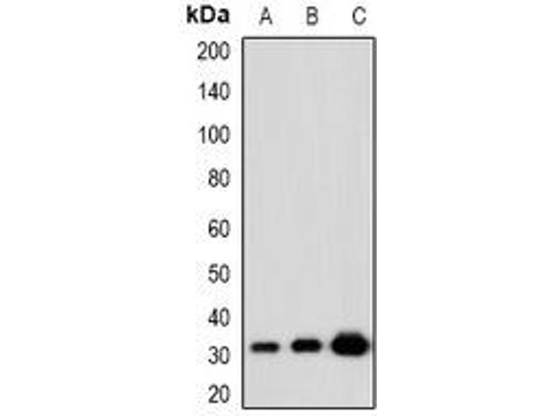 Der Kaninchen Polyklonal anti-KLF13 Antikörper (ABIN7303542) detektiert spezifisch KLF13 in WB.