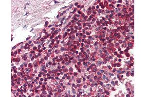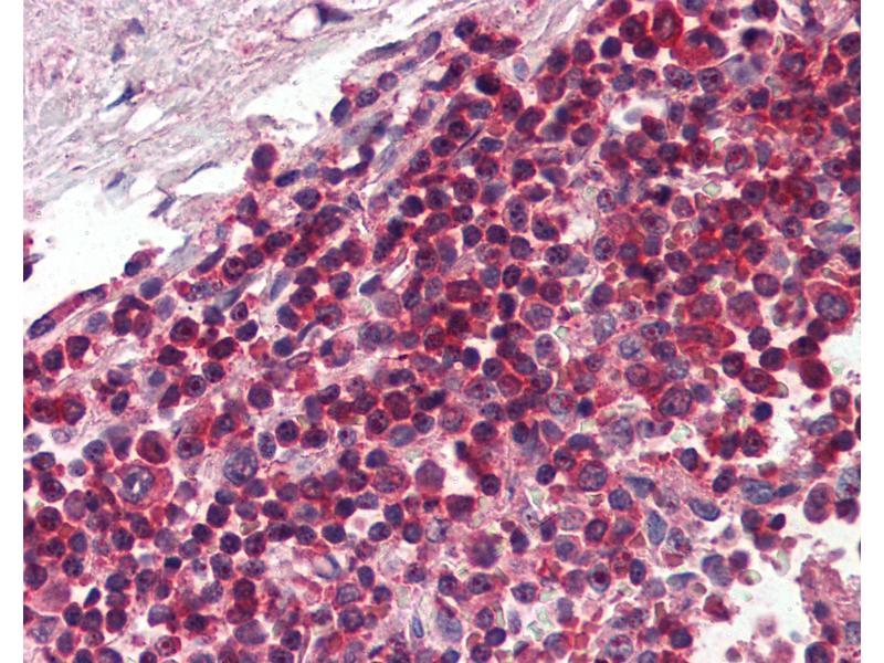 Usage: Immunohistochemistry: This antibody was validated for use in immunohistochemistry on a panel of 21 formalin-fixed, paraffin-embedded (FFPE) human tissues after heat induced antigen retrieval in pH 6.0 citrate buffer. After incubation with the primary antibody, slides were incubated with biotinylated secondary antibody, followed by alkaline phosphatase-streptavidin and chromogen. The stained slides were evaluated by a pathologist to confirm staining specificity. The optimal working concentration for this antibody was determined to be 5 μg/mL. -