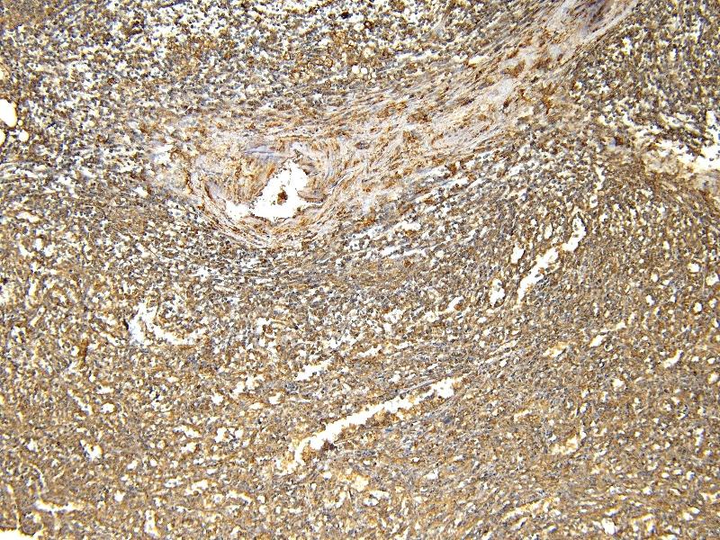 Immunohistochemistry: Paraffin embedded Human Spleen. Recommended concentration: 4-6 μg/mL.