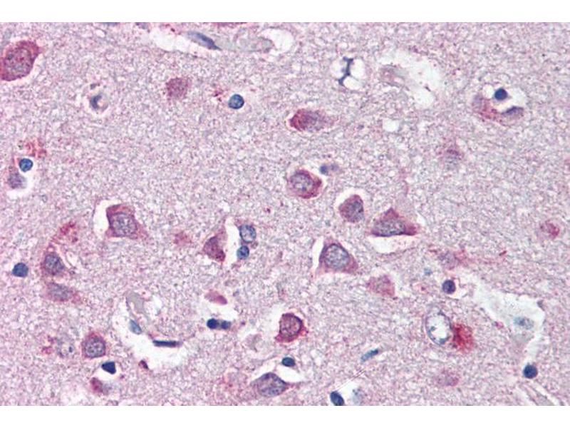 Immunohistochemistry: Paraffin embedded Human Brain (Cortex). Recommended concentration: 5 μg/mL. This product has been successfully used by customers on Formalin/PFA-fixed paraffin-embedded sections of Zebrafish Brain (Cortex).