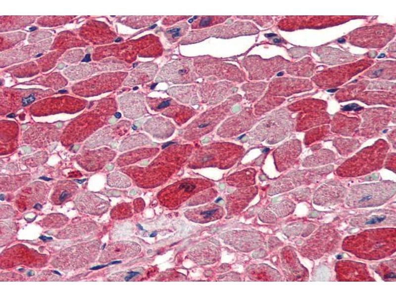 Immunohistochemistry: Paraffin embedded Human Brain (Cortex) and Heart. Recommended concentration: 5 μg/mL.