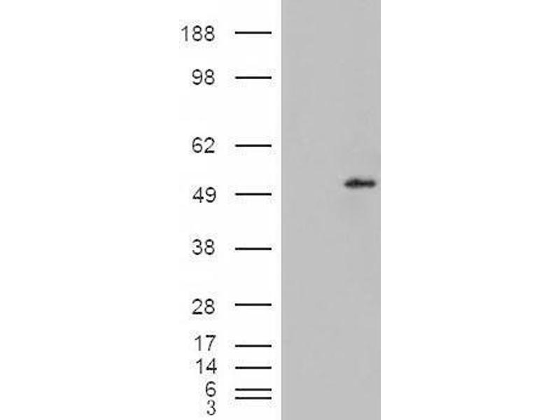 Western Blot: Approx. 50-55 kDa band observed in Human Adipose lysates (calculated MW of 52.0 kDa according to NP_078912.2). In transfected HEK293 transiently expressing Human Dudulin4 a band of approx. 52 kDa is observed. This band is not observed in the n