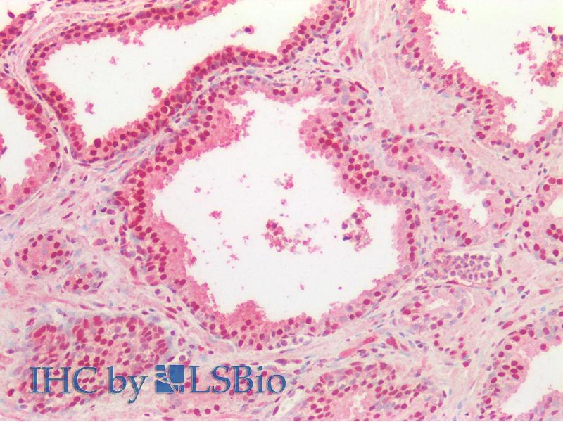 Immunohistochemistry: Paraffin embedded Human Prostate. Recommended concentration: 5 μg/mL.