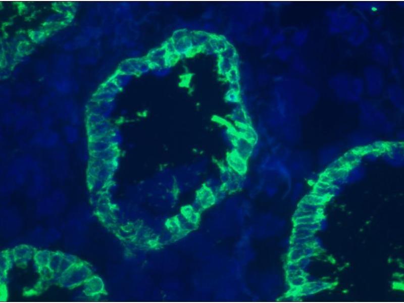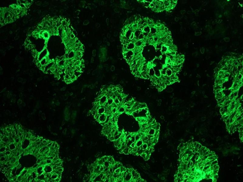 - M20 reacts with glandular epithelial cells (endocrine and exocrine) as well as mesothelial cells of the digestive, respiratory and urogenital tract and most adenocarcinomas derived from these cells. M20 is suitable for immunoblotting, immunocytochemistry, immunohistochemistry on frozen tissues and flow cytometry. Optimal antibody dilution should be determined by titration, recommended range is 1:100 - 1:200 for immunohistochemistry with avidin-biotinylated horseradish peroxidase complex (ABC) as detection reagent, and 1:100 - 1:1000 for immunoblotting applications.