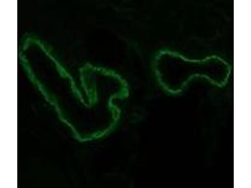 158A3 reacts exclusively with the cytoplasmic domain of non-phosphorylated integrin subunit alpha3A. 158A3 is suitable for immunoblotting, immunocytochemistry and immunohistochemistry on frozen tissues. Optimal antibody dilution should be determined by titration, recommended range is 1:100 - 1:200 for immunohistochemistry with avidin-biotinylated horseradish peroxidase complex (ABC) as detection reagent, and 1:100 - 1:1000 for immunoblotting applications.