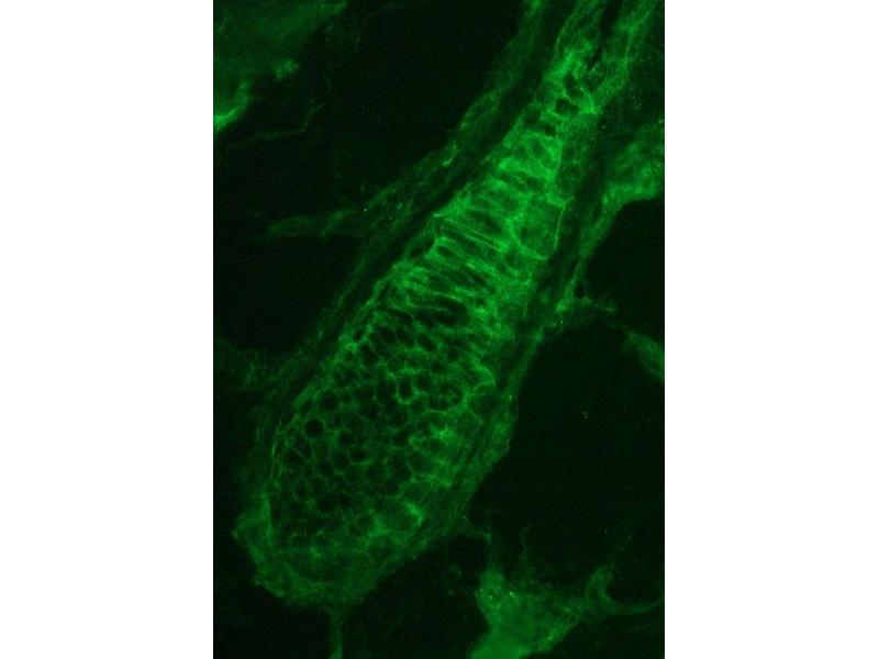 Der Maus Monoklonal anti-Plakophilin 3 Antikörper (Klon 23E3-4) (ABIN335358) detektiert spezifisch Plakophilin 3 in WB, IHC, IP, IHC (fro), IHC (p) und ICC.