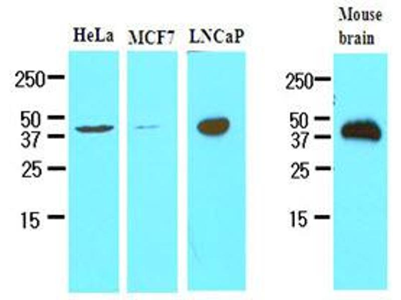 ELISA. Western blot (1/500-1/1,000). Other applications not tested. Optimal dilutions are dependent on conditions and should be determined by the user.
