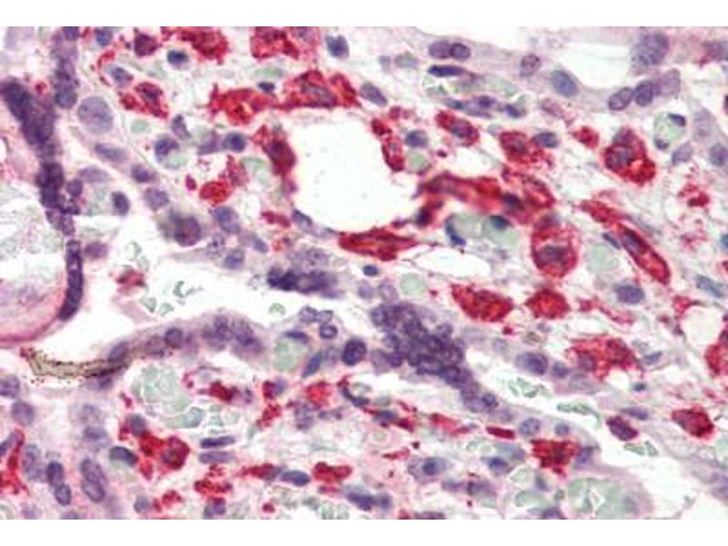 Usage: Immunohistochemistry: This antibody was validated for use in immunohistochemistry on a panel of 21 formalin-fixed, paraffin-embedded (FFPE) human tissues after heat induced antigen retrieval in pH 6.0 citrate buffer. After incubation with the primary antibody, slides were incubated with biotinylated secondary antibody, followed by alkaline phosphatase-streptavidin and chromogen. The stained slides were evaluated by a pathologist to confirm staining specificity. The optimal working concentration for this antibody was determined to be 5 μg/mL. Western Blot: 0.1-1 μg/mL detects MKP1 in RIPA lysates from 3T3/A31 cells. 3T3/A31 cell lysate was resolved by electrophoresis, transferred to nitrocellulose and probed with anti-MKP1 (0.3 μg/mL). -