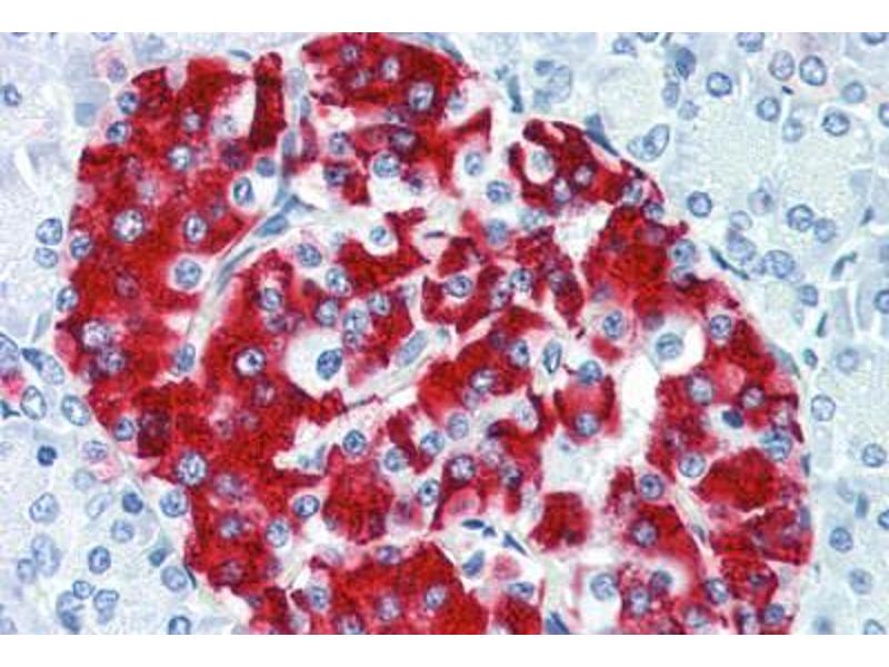 Dieses Kaninchen Polyklonal-Antikörper erkennt spezifisch Insulin in IHC, IF, IHC (p), FACS und ICC. Er zeigt eine Reaktivität gegenüber Human, Maus und Ratte.