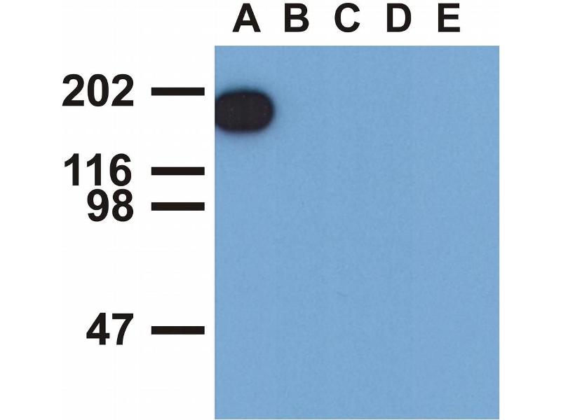 Western blotting: Recommended dilution: 1 μg/mL, positive control: EGF-stimulated A431, negative control: non-stimulated A431.