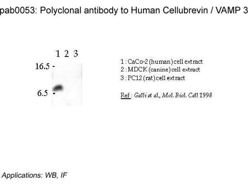 - Reacts with human 10 kDa VAMP-3 of CaCo-2 cell extract