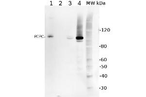Expected / apparent Molecular Weight of the Antigene: 110 / 105 kDa
