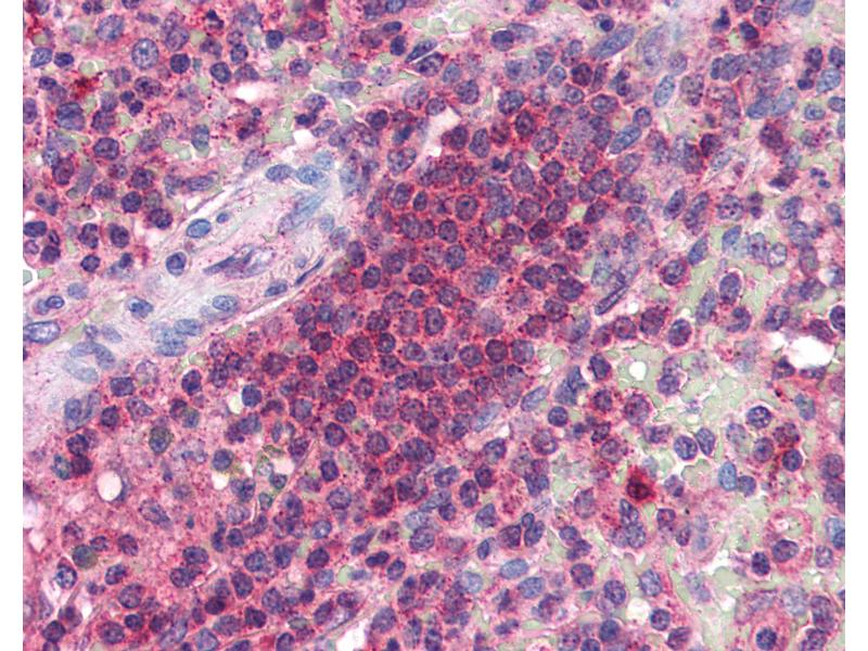 Usage: Immunohistochemistry: This antibody was validated for use in immunohistochemistry on a panel of 21 formalin-fixed, paraffin-embedded (FFPE) human tissues after heat induced antigen retrieval in pH 6.0 citrate buffer. After incubation with the primary antibody, slides were incubated with biotinylated secondary antibody, followed by alkaline phosphatase-streptavidin and chromogen. The stained slides were evaluated by a pathologist to confirm staining specificity. The optimal working concentration for this antibody was determined to be 5 μg/mL. -