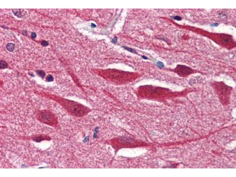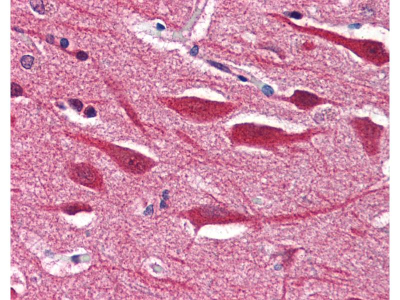 Usage: Immunohistochemistry: This antibody was validated for use in immunohistochemistry on a panel of 21 formalin-fixed, paraffin-embedded (FFPE) human tissues after heat induced antigen retrieval in pH 6.0 citrate buffer. After incubation with the primary antibody, slides were incubated with biotinylated secondary antibody, followed by alkaline phosphatase-streptavidin and chromogen. The stained slides were evaluated by a pathologist to confirm staining specificity. The optimal working concentration for this antibody was determined to be 5 μg/mL. Western Blot (Colorimetric): 1 μg/mL was sufficient for detection in 20 μg rat brain tissue extract. Positive control: HeLa Cell Lysate. -