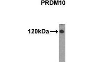 The PRDM10 protein is a transcription factor that contains C2H2-type zinc-fingers. It also contains a positive regulatory domain, which has been found in several other zinc-finger transcription factors including those involved in B cell differentiation and tumor suppression. Studies of the mouse counterpart suggest that this protein may be involved in the development of the central nerve system (CNS), as well as in the pathogenesis of neuronal storage disease. Multiple alternatively spliced transcript variants encoding distinct isoforms have been observed.Synonyms: KIAA1231, PFM7, PR domain zinc finger protein 10, PR domain-containing protein 10, TRIS, Tristanin