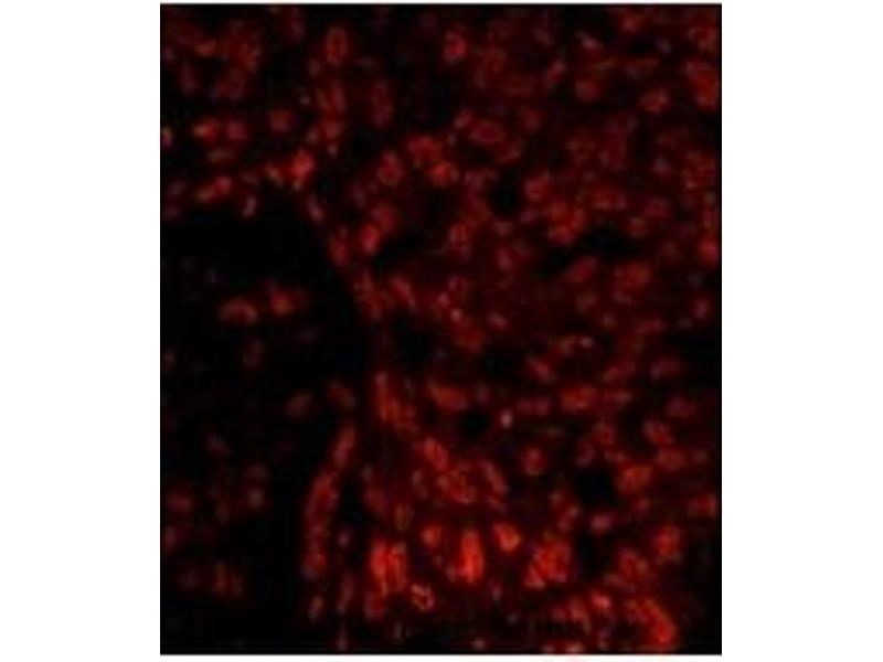 ELISA: 1/10000. Western blot: 1/200-1/2000. Immunohistochemistry on paraffin sections: 1/50-1/100. Immunofluorescence: 1/10-1/50.