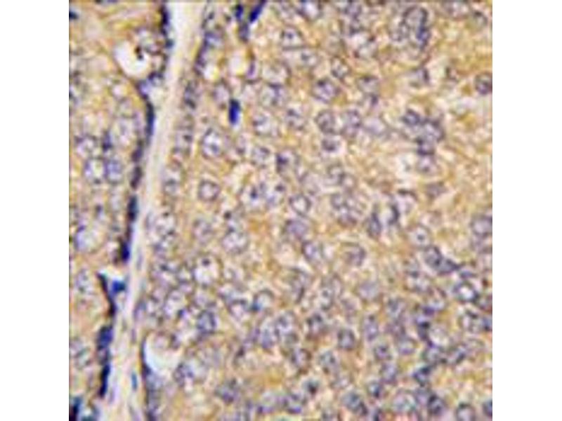 ELISA 1: 1,000. Western blot 1: 50 - 1: 100. Immunohistochemistry 1: 50. Other applications not tested. Optimal dilutions are dependent on conditions and should be determined by the user.