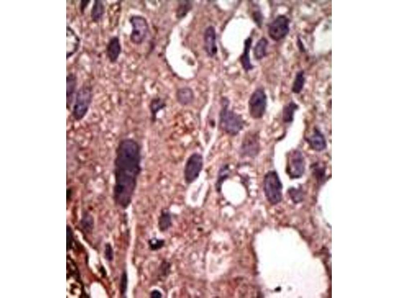 ELISA: 1/1,000. Western Blot: 1/100-1/500. Immunohistochemistry: 1/50-1/100. Other applications not tested. Optimal dilutions are dependent on conditions and should be determined by the user.