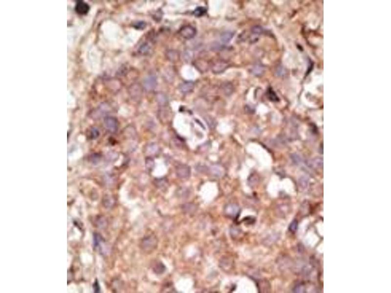 ELISA: 1/1,000. Western Blot: 1/100-1/500. Immunohistochemistry: 1/50-1/100. Other applications not tested. Optimal dilutions are dependent on conditions and should be determined by the user.
