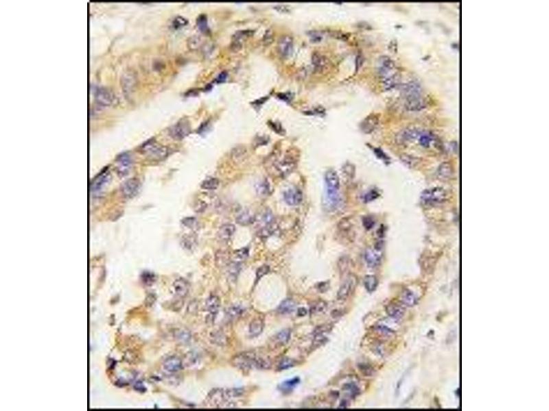 ELISA: 1/1,000. Western Blot: 1/50-1/100. Immunohistochemistry: 1/10-1/50. Other applications not tested. Optimal dilutions are dependent on conditions and should be determined by the user.