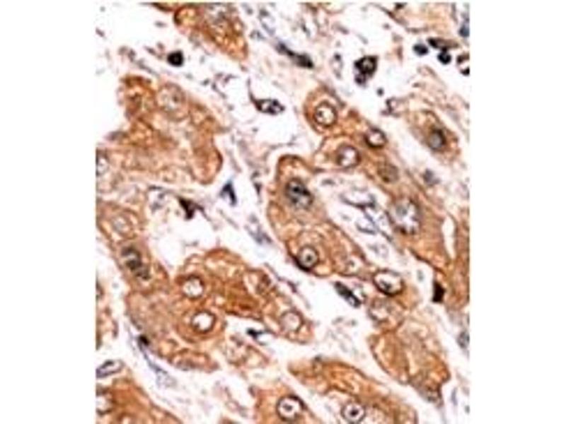 ELISA: 1/1,000. Western Blot: 1/100-1/500. Immunohistochemistry: 1/50-1/100. Other applications not tested. Optimal dilutions are dependent on conditions and should be determined by the user.